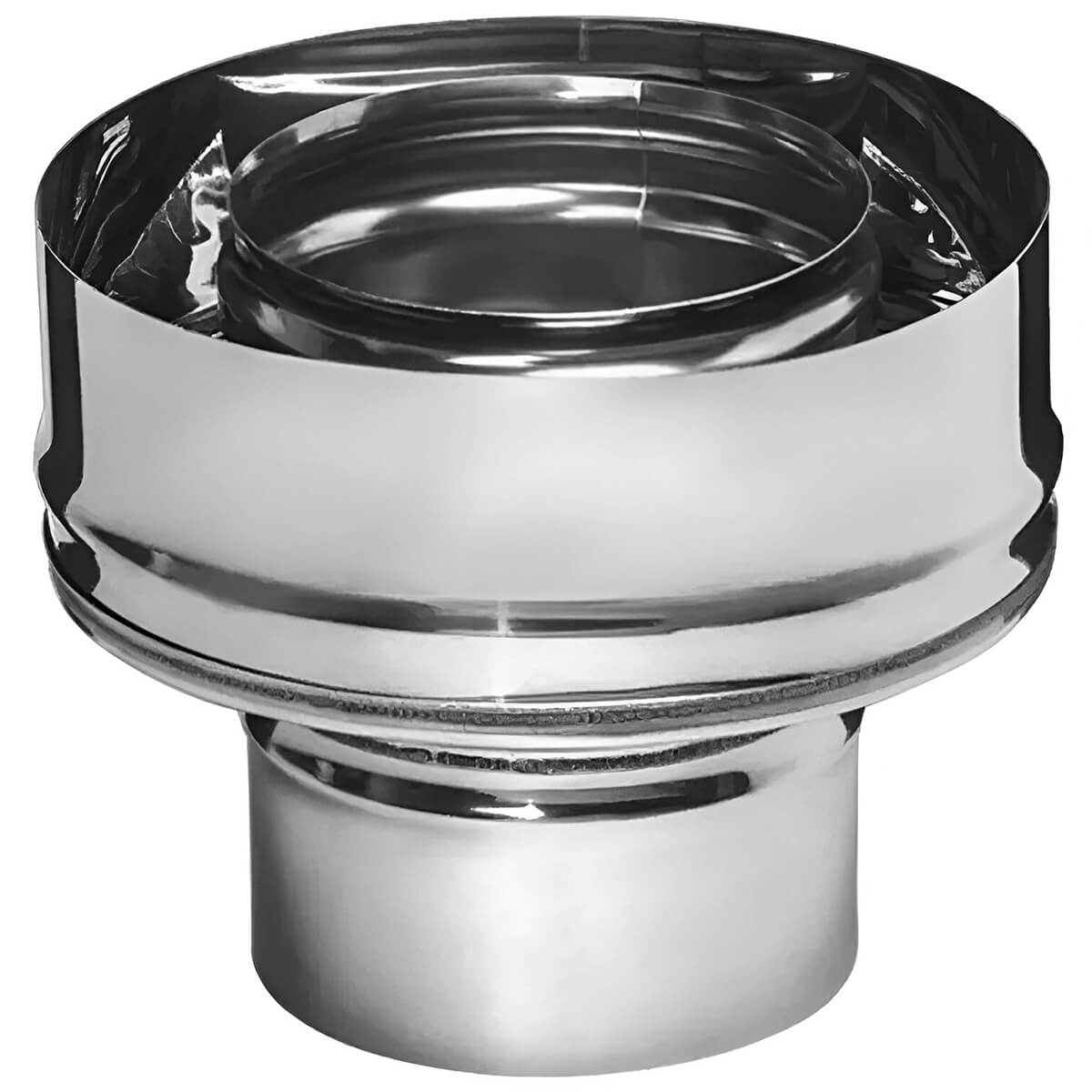 Деталь закрывает узел стыка и помогает правильно распределить нагрузку от сэндвич-секции, снижая риск перекоса соединений. Изготовлена из нержавеющей стали AISI 430 толщиной 0,5 мм, подходит для систем дымоотведения в бытовом отоплении.