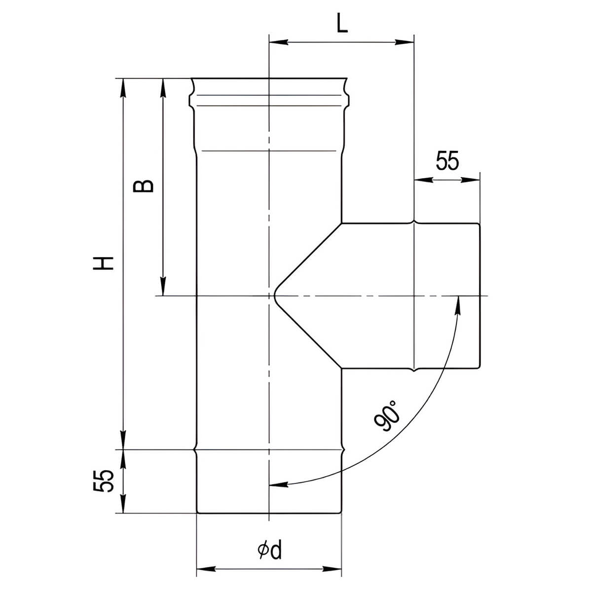 Тройник дымоходный FERRUM 90° х d.130 мм, из нержавеющей стали AISI 430, толщина 0,5 мм F4706