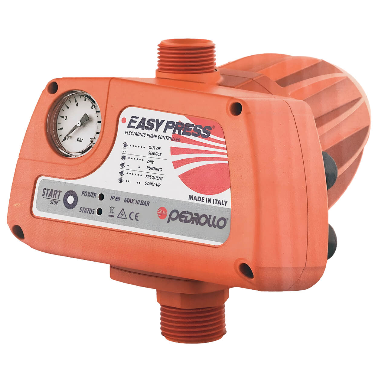 Регулятор давления электронный Pedrollo Easy Press II M 1.5 кВт, с манометром, оранжевый 50066/215P