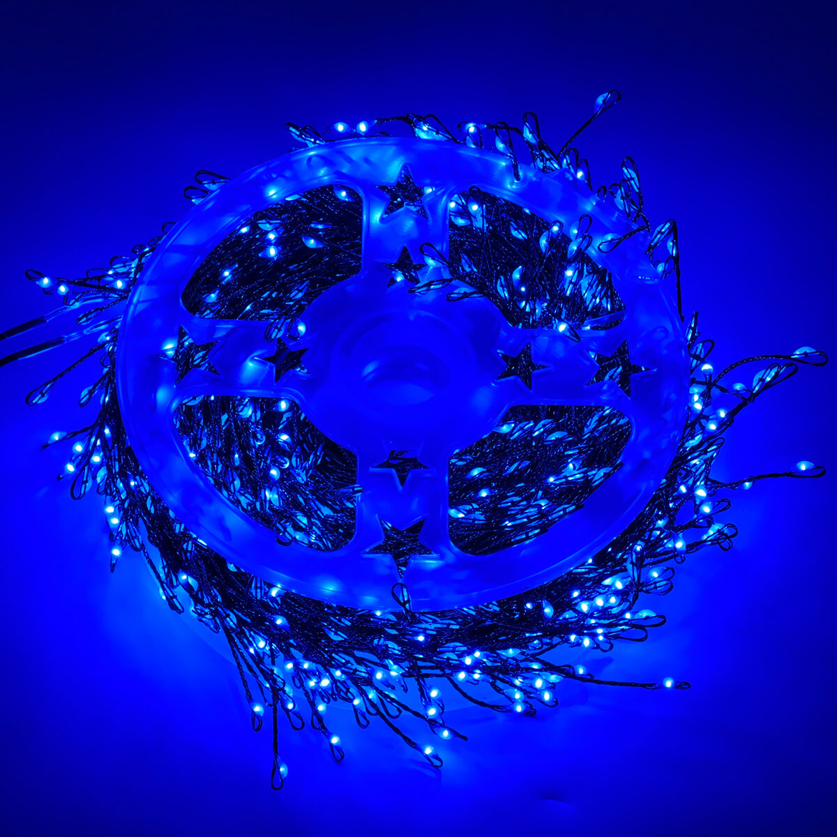 Гирлянда светодиодная 1000 лампочек, 30 м, синий свет, зелёный провод — декоративная подсветка для новогоднего оформления и атмосферного света в доме, на витрине или во дворе. Длина 30 метров и плотная «россыпь» из 1000 светодиодов дают яркое, равномерное свечение без пустых участков, а зелёный провод визуально растворяется на ёлке и зелёных декорациях.