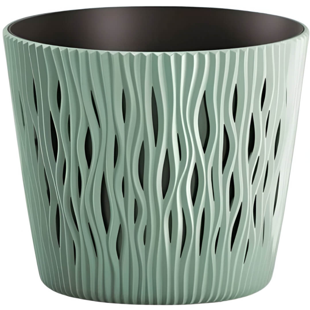 Дизайн с фактурной поверхностью напоминает природные линии песчаных дюн, а нежный шалфейный оттенок добавляет интерьеру свежести. Изготовленный из прочного пластика, горшок отличается легкостью (0,34 кг) и устойчивостью к воздействию влаги и УФ-лучей.