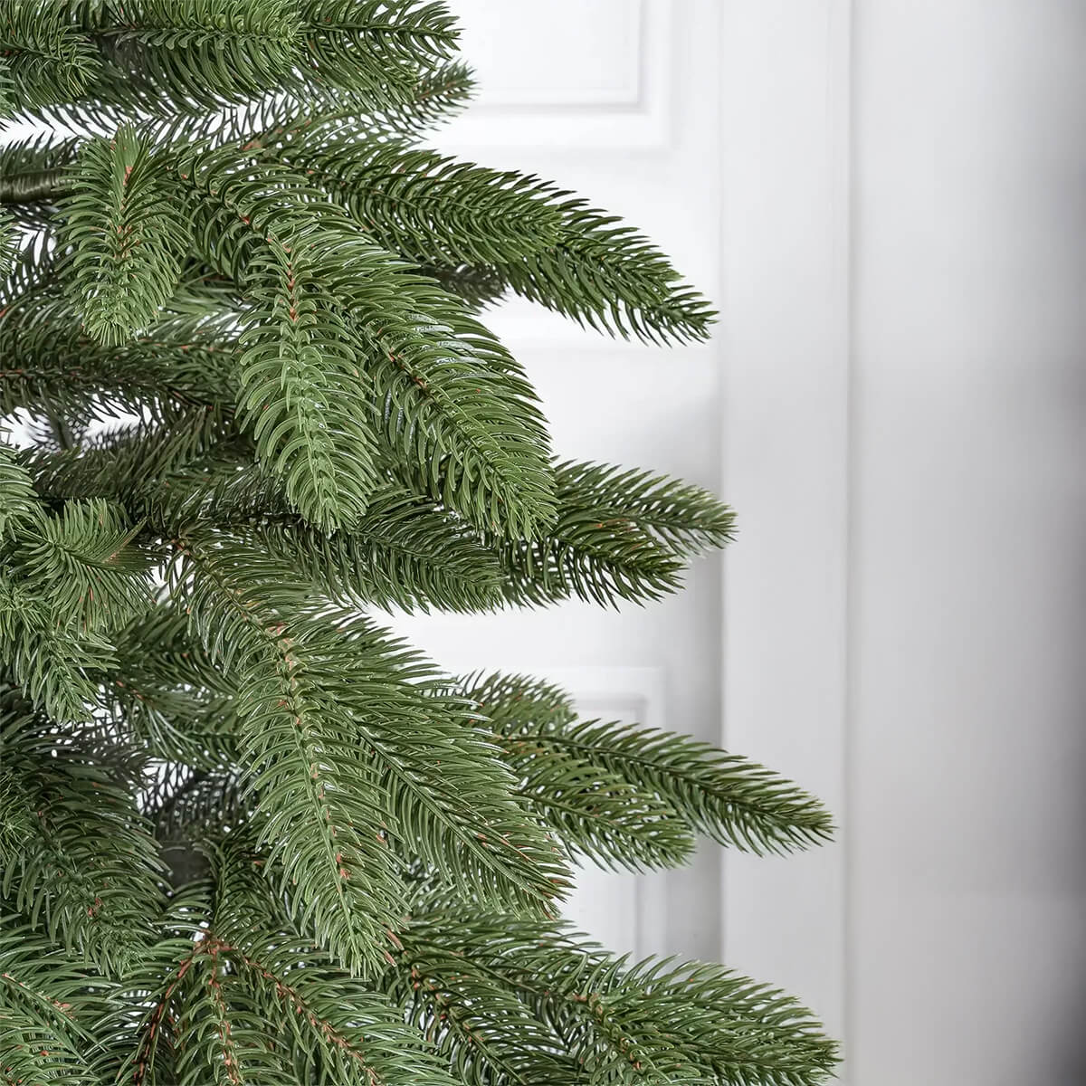 Модель собрана так, чтобы ёлку было удобно ставить каждый сезон: ветви держат форму, распушаются до плотной «шапки», а складная металлическая подставка обеспечивает устойчивость на полу. Благодаря материалу PE иголки визуально похожи на настоящие и при этом не осыпаются, не колются и не требуют уборки «как после леса».