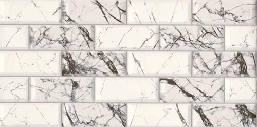 Плитка выполнена в стиле «кирпичиков» с выразенной мраморной текстурой, что делает её универсальной для кухни, ванной или зон с повышенной влажностью. Благодаря прочной глазури плитка устойчива к загрязнениям и легко моется, что особенно важно в помещениях с интенсивной эксплуатацией.