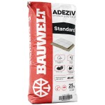 Клей для плитки цементный Bau Welt Standart серый 25 кг — сухая цементная смесь для приклеивания плиточных покрытий внутри и снаружи помещений. Подходит для монтажа керамической плитки и терракоты на стенах и полах, когда нужна стабильная фиксация и влагостойкость.