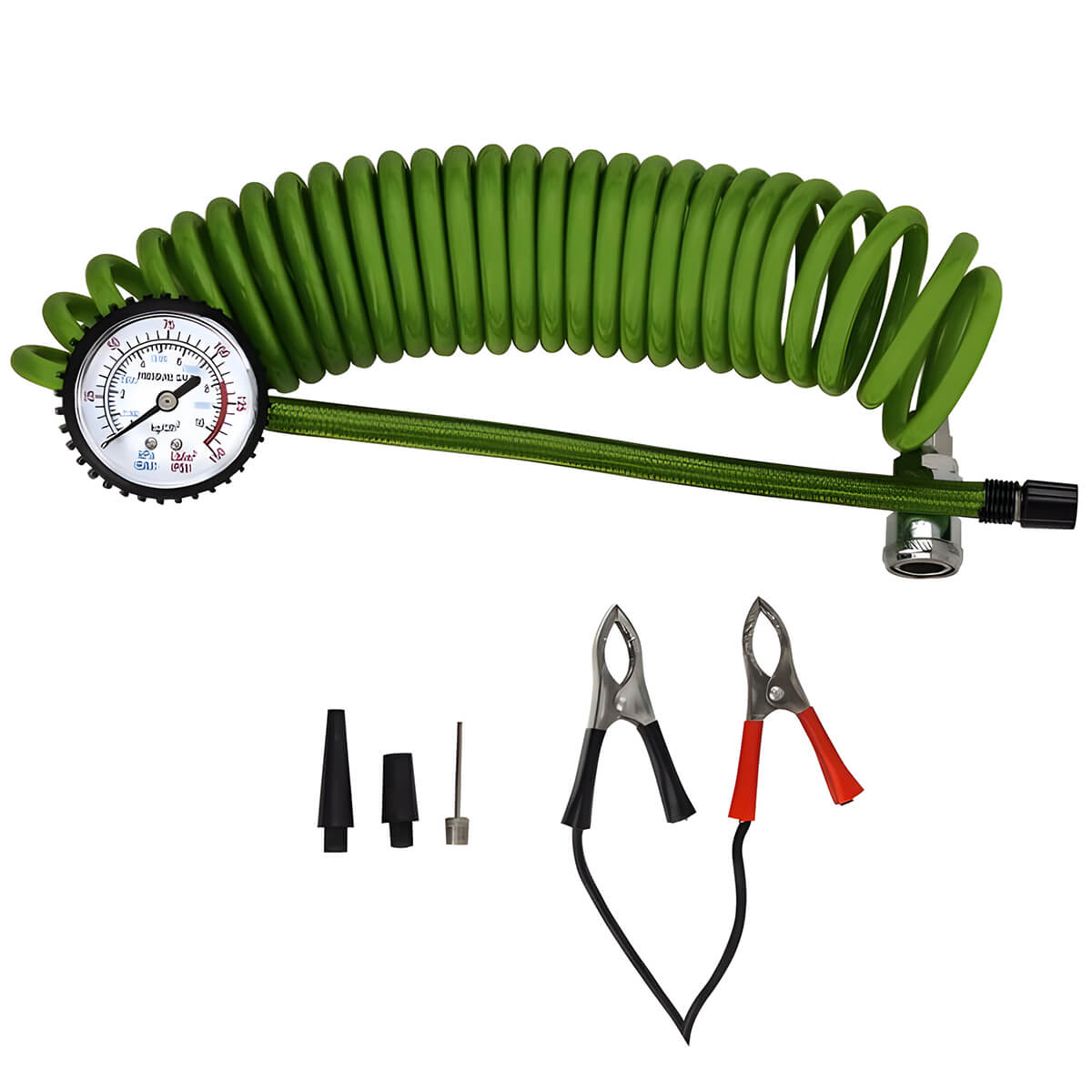 - Комплектация: компрессор, переходники для различных изделий, шланг с манометром, сумка для хранения.