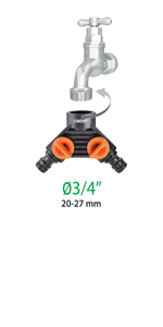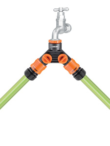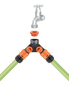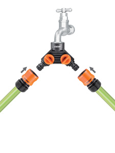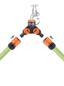 Один выход для подключения двух фитингов к одному крану, независимо регулирующий поток воды на каждом пути.