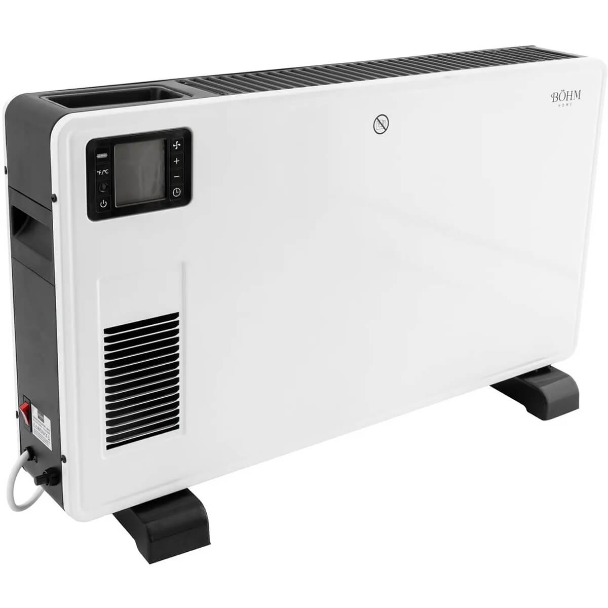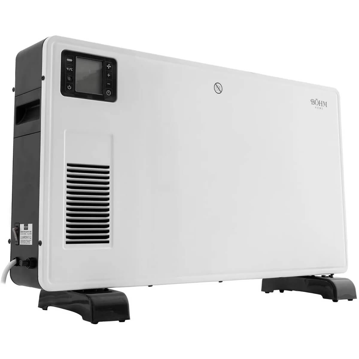 Конвектор электрический напольный BOHM BH02 2000 Вт, с дисплеем и пультом, обогрев 20-25 м2, белый — удобное решение для быстрого и понятного обогрева комнаты, кабинета или дачи. Напольный формат не требует сложного монтажа: поставили, подключили в сеть и настроили комфортную температуру.