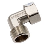 Угол с накидными гайками 3/4" ВР х 3/4" НР, никелированная латунь, 90 градусов, для воды и отопления