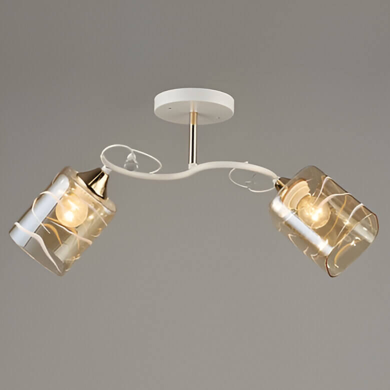 Современная потолочная люстра O’LESSYA (A3819/2) в белом исполнении с золотыми элементами. Размеры 550x210x260 мм, две лампы E27 максимум по 60 Вт, стильный дизайн с коричневыми стеклянными плафонами, общая мощность 120 Вт.