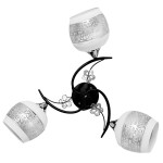 Люстра потолочная O’LESSYA (N3488/3) в сочетании черного, белого и хромированного цветов — это изящное решение для создания стильного интерьера. Три плафона с красивым узором создают мягкое и комфортное освещение, добавляя в комнату атмосферу уюта. Декоративные элементы в форме цветов делают люстру особенно привлекательной, подчеркивая её элегантный дизайн.
