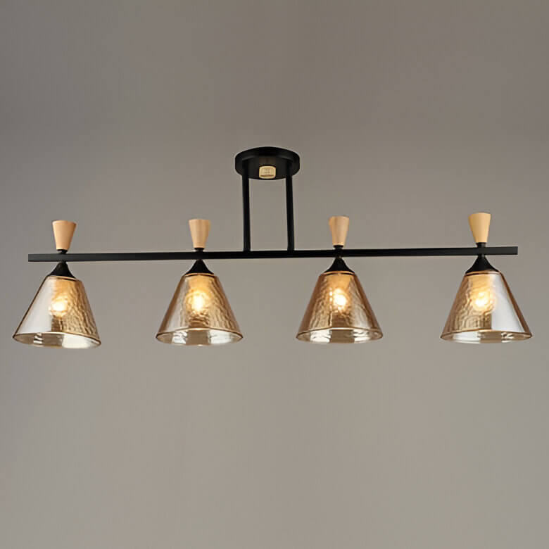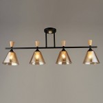 Элегантная потолочная люстра O’LESSYA (N4864/4) с деревянными элементами и черным металлическим основанием. Размеры 905x155x335 мм, четыре источника света на цоколе E27 максимум по 60 Вт каждый, общая мощность 240 Вт. Модернистский стиль, идеально подходит для создания теплой атмосферы в интерьере. 220-230 В, стеклянные плафоны коричневого цвета добавляют изысканности.