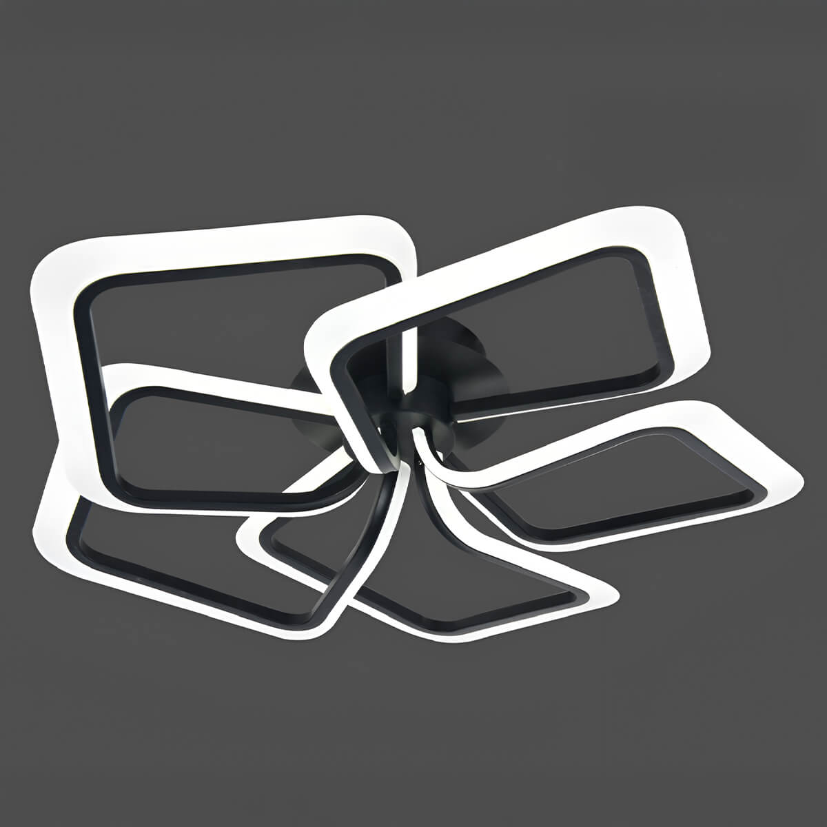 Пять светящихся контуров в форме квадратов дают ровный свет и подчёркивают стиль интерьера. Подходит для гостиной, спальни, кухни, кабинета и прихожей, особенно там, где нужен аккуратный дизайн без свисающих элементов.