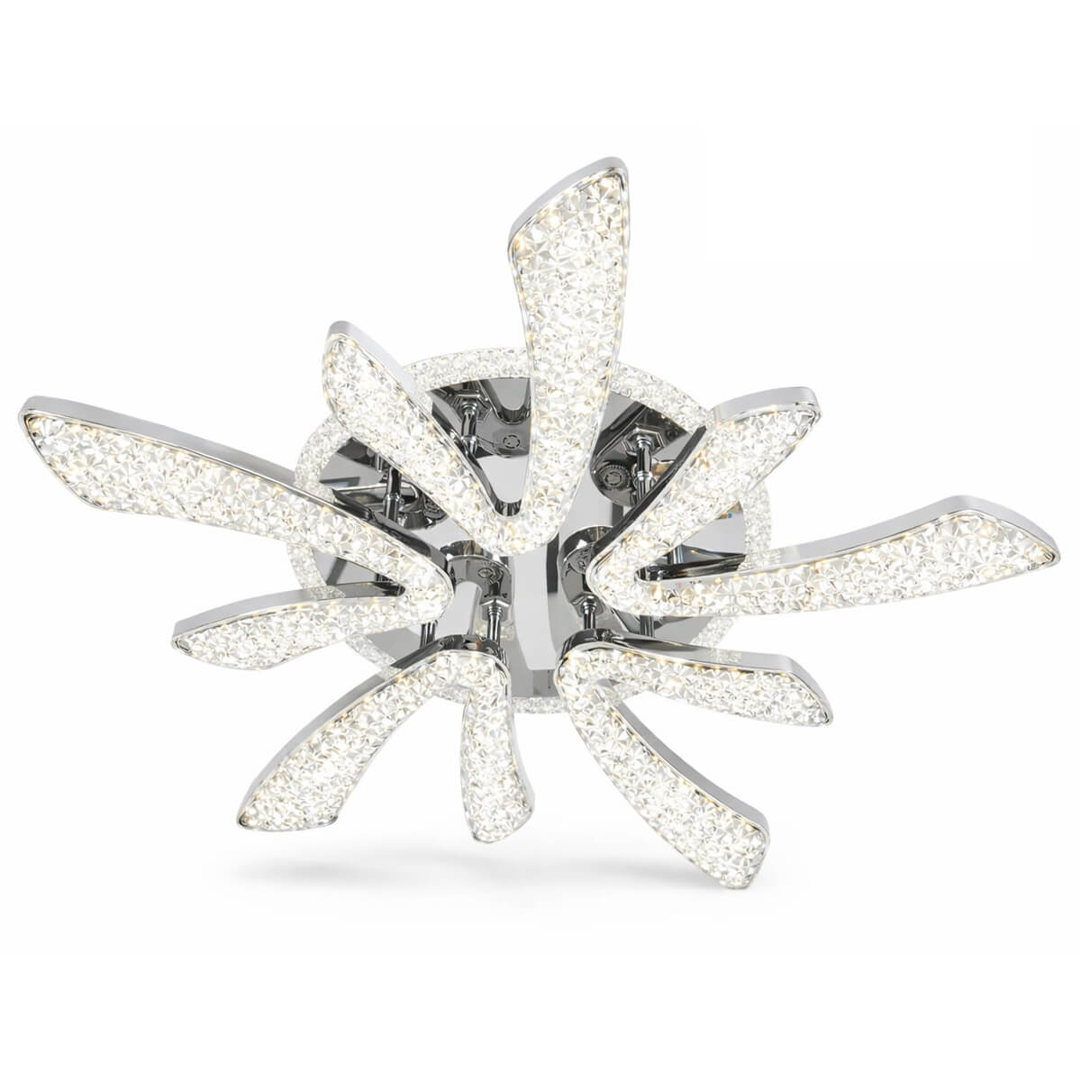 • Дизайн: хромированный корпус и декоративные плафоны с «кристальным» эффектом добавляют современный акцент в интерьер.