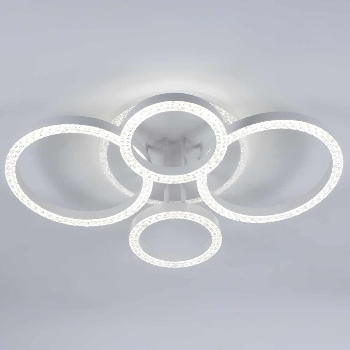 Люстра светодиодная потолочная кольца 2+2, белая 6115Y-2+2 WH — современный потолочный светильник для ровного и комфортного освещения в квартире или офисе.