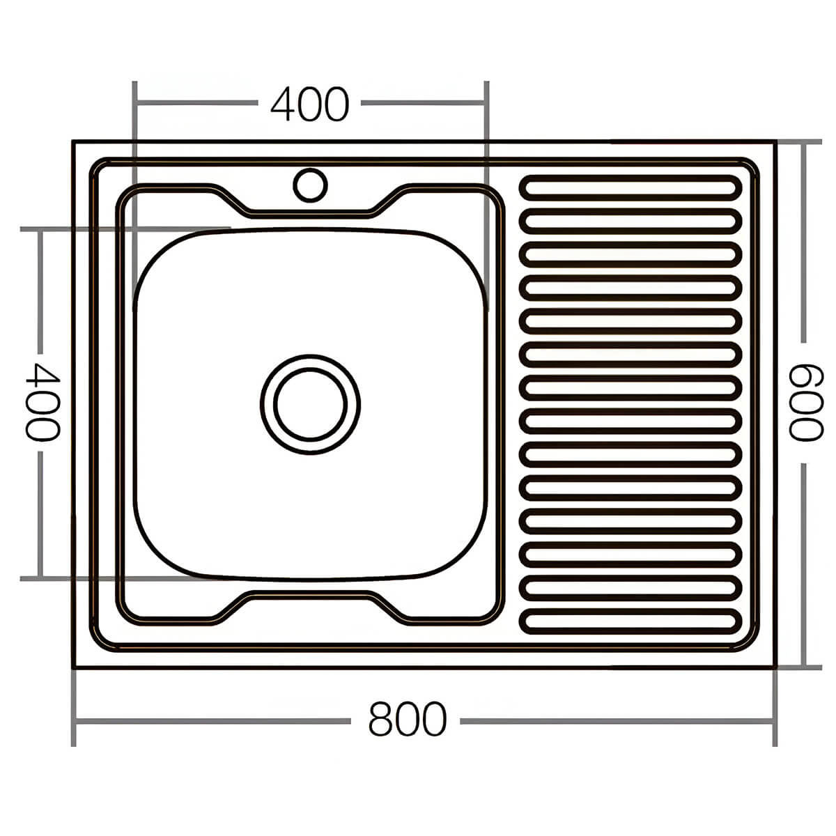 Мойка кухонная FLOW нержавеющая сталь, сатин, 800х600х160 мм, 0,4 мм, 1 чаша, с правым крылом F8060L-04-160E предназначена для ежедневного мытья посуды и продуктов на кухне. Одна глубокая чаша и правое крыло дают удобную зону для стекания воды и размещения посуды.