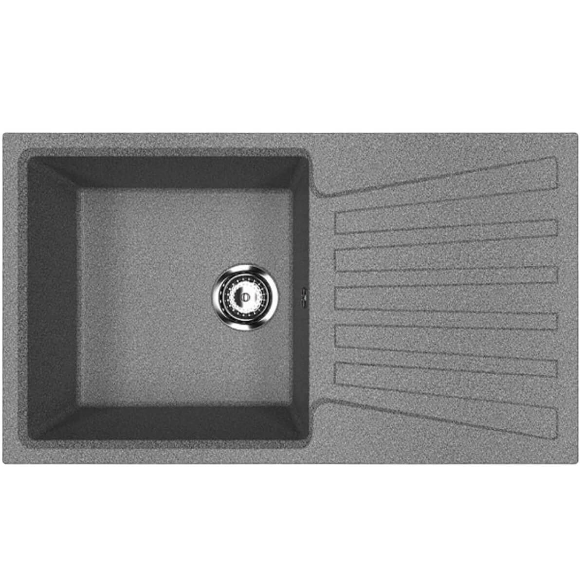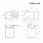 Мойка кухонная Ulgran U-703-309, врезная, 830х480х210 мм, искусственный мрамор, 1 чаша, крыло реверсивное, темно-серая — практичная врезная мойка из искусственного мрамора для ежедневной кухни. Матовая темно-серая поверхность выглядит аккуратно и «не спорит» с техникой и столешницей. Чаша глубокая и удобная для крупной посуды, а реверсивное крыло можно развернуть под планировку — слева или справа.