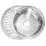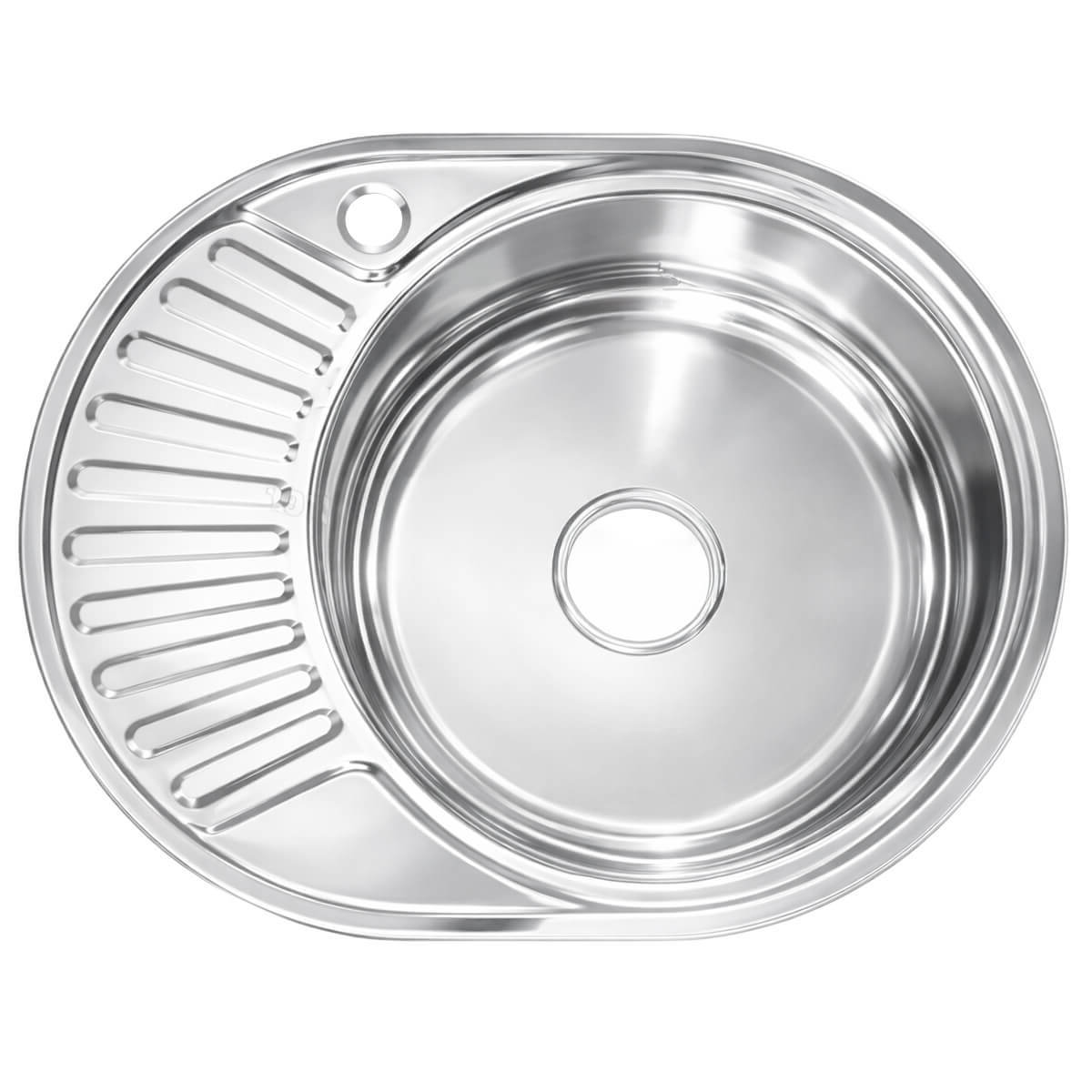 Мойка кухонная врезная овальная 570x450x180 мм из нержавеющей стали, крыло слева -  предназначена для мытья посуды, продуктов и выполнения повседневных кухонных задач. Овальная форма обеспечивает удобную рабочую зону, а глубина чаши снижает разбрызгивание воды.