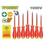Набор диэлектрических отверток DYLLU 7 шт, 1000 В, SL3.0х75 - SL6.5х150, PH0х75 - PH2х100 DTSS7407 предназначен для монтажа и обслуживания электрооборудования, где важна защита при работе рядом с токоведущими элементами. Изоляция рассчитана на напряжение до 1000 В, поэтому комплект подходит для электриков, техников и домашнего ремонта.