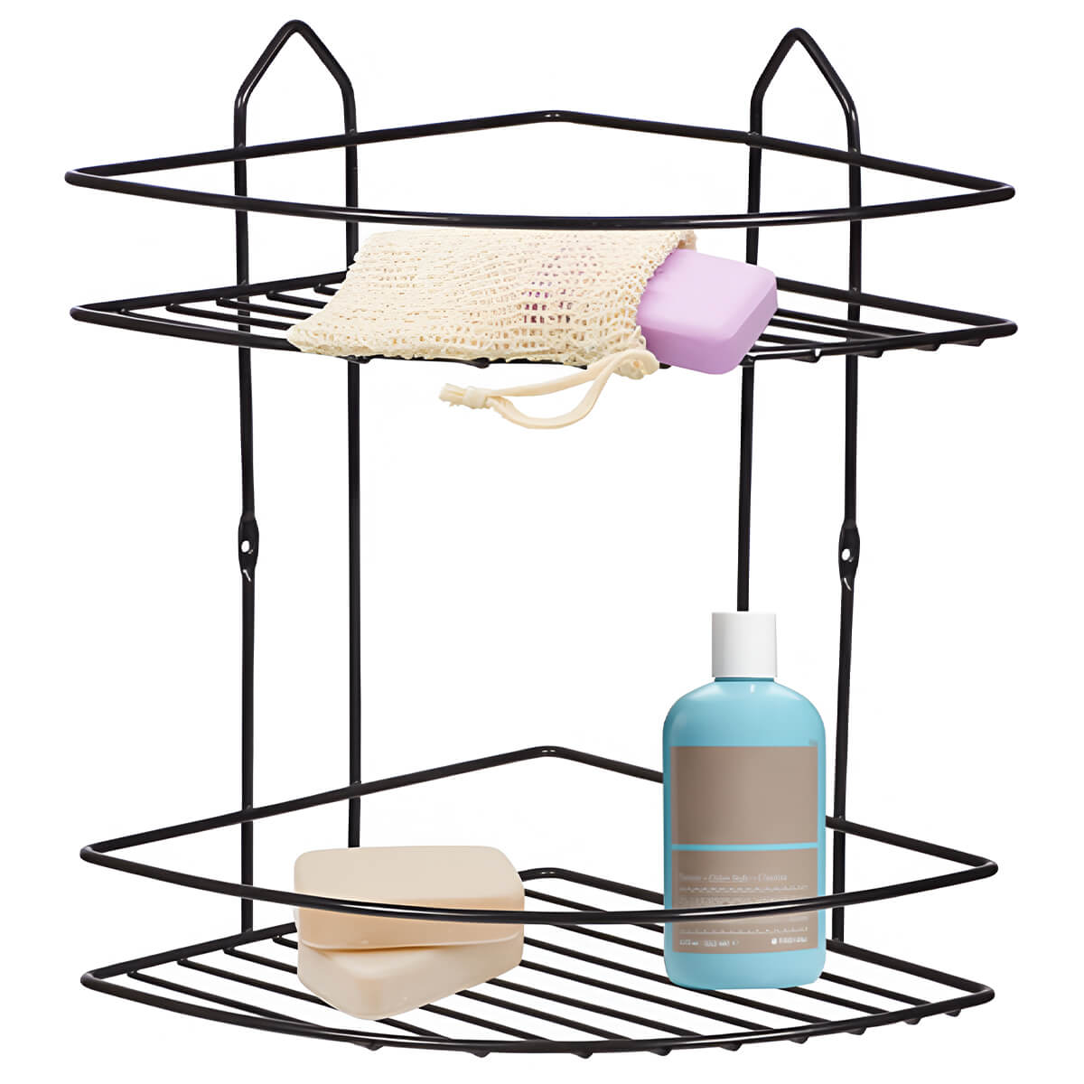 Полка угловая для ванной двухъярусная Perilla, металлическая, черная, 200х200х280 мм