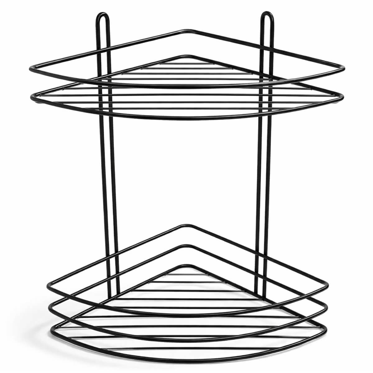 Полка угловая двухъярусная для ванной HYDRO-S 200х200х310 мм, нержавеющая сталь, черная — компактное решение для хранения в душе или возле раковины. Устанавливается в угол и экономит место, а два яруса помогают разнести шампуни, гели, мыло и аксессуары так, чтобы всё было под рукой.