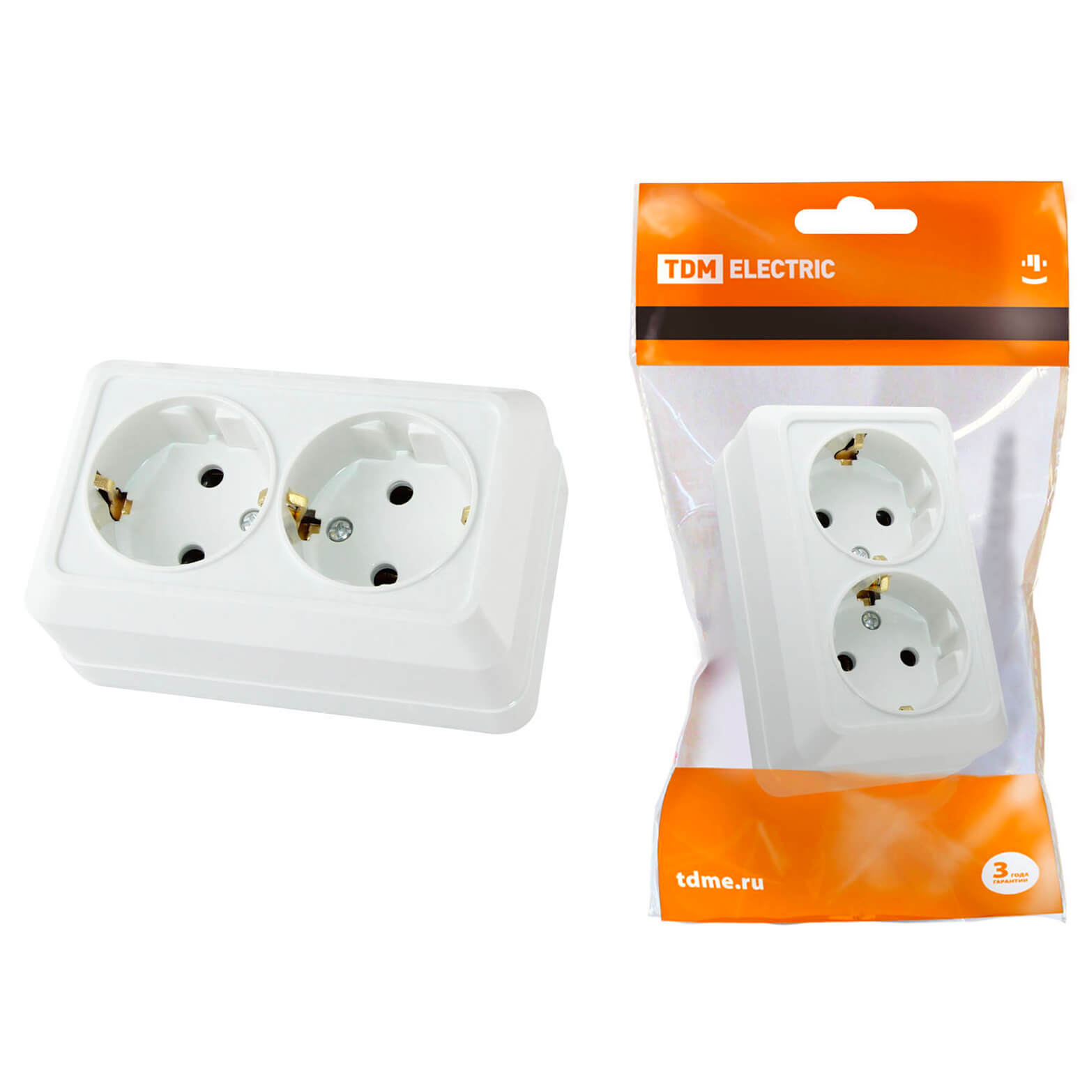 Розетка двойная открытой установки 2П+3 IP20 16А, белая TDM Ладога SQ1801-0019. Для дополнительной информации обратитесь к консультанту магазина VERITAN.