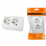 Розетка двойная открытой установки 2П+3 IP20 16А, белая TDM Ладога SQ1801-0019