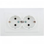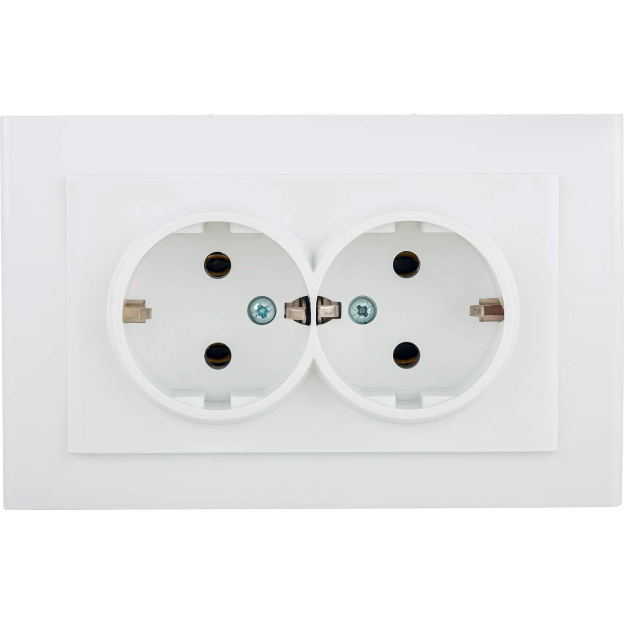 Розетка 2-местная с заземлением OVIVO MINA, белый, 401-010300-907: надежное электроприятие с двумя гнездами. Обеспечивает надежное заземление, соответствует высоким стандартам безопасности. Прочная конструкция, легкая установка, подходит для различных подключений.