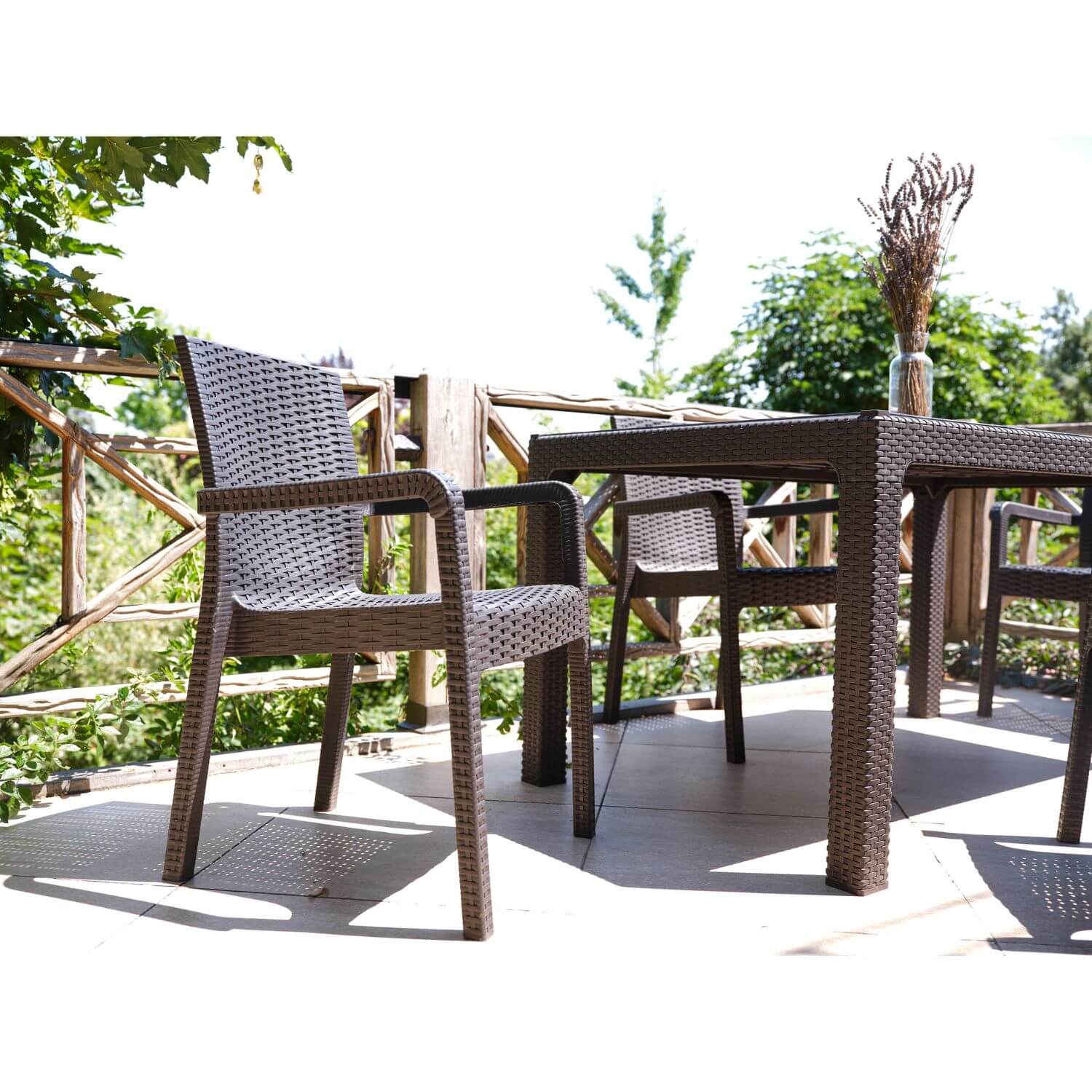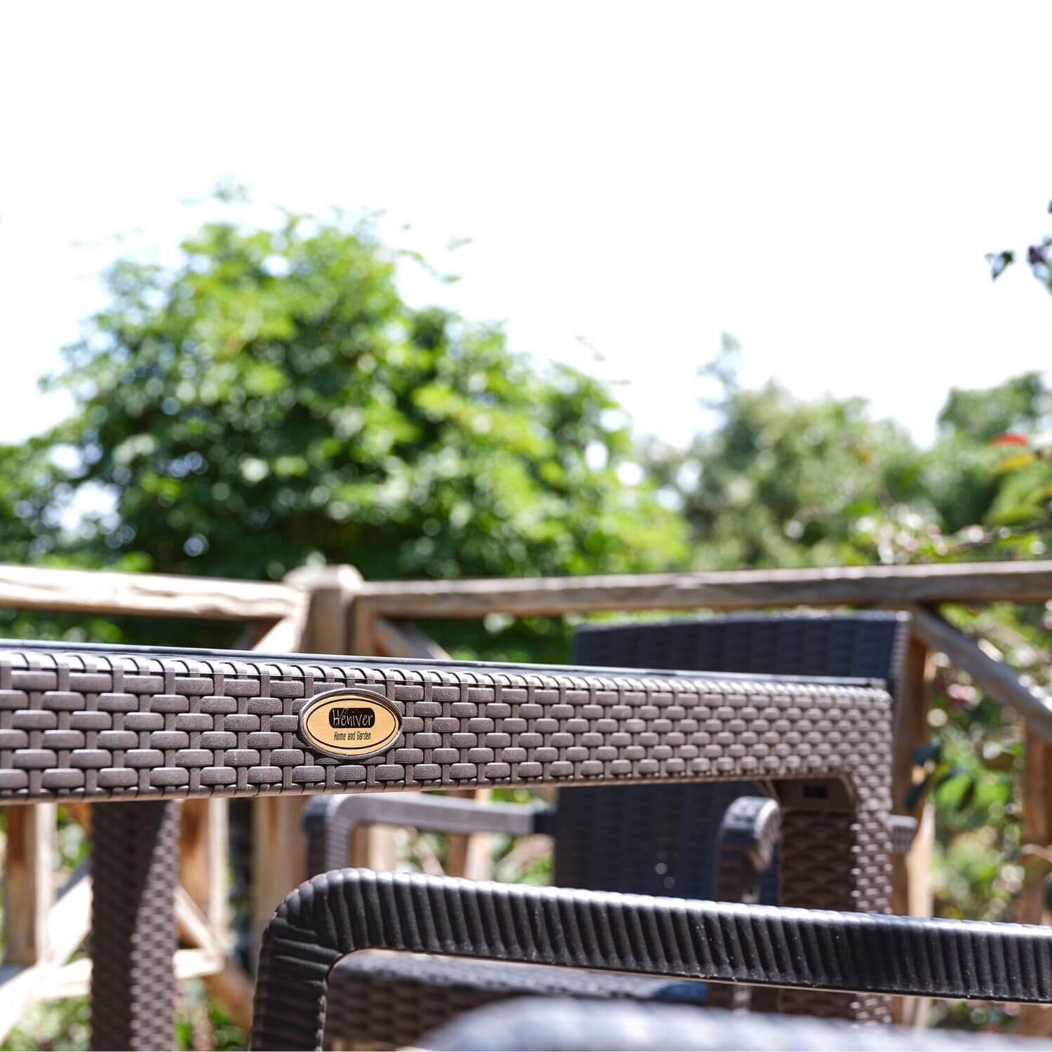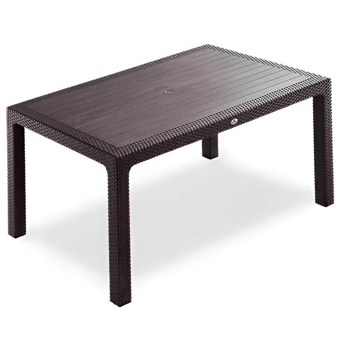 Стол садовый пластиковый под ротанг Heniver 150x90 см, коричневый, без стекла — практичное решение для террасы, веранды или сада, созданное для ежедневного использования на открытом воздухе. Модель сочетает современный дизайн под искусственный ротанг и прочную конструкцию, устойчивую к погодным нагрузкам.