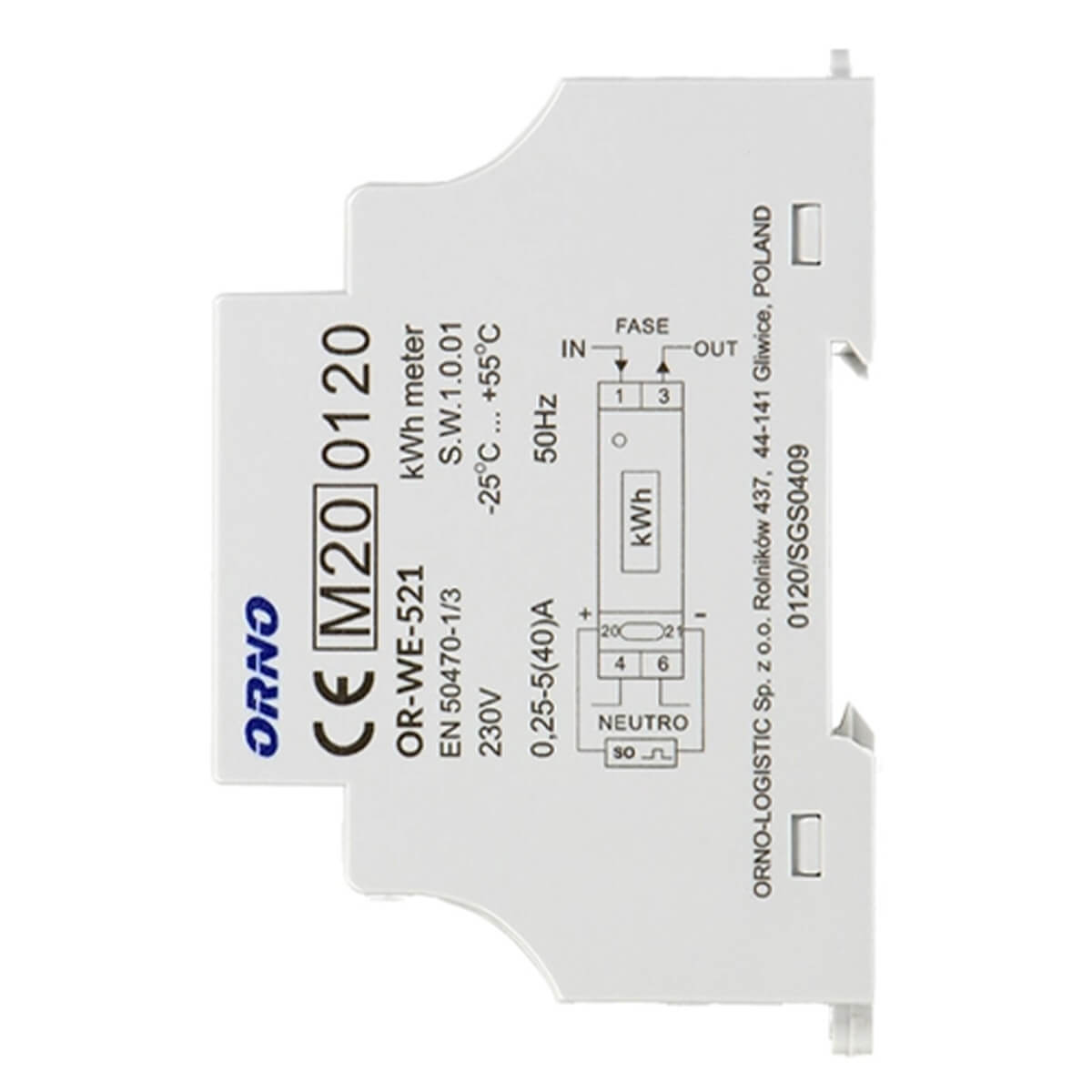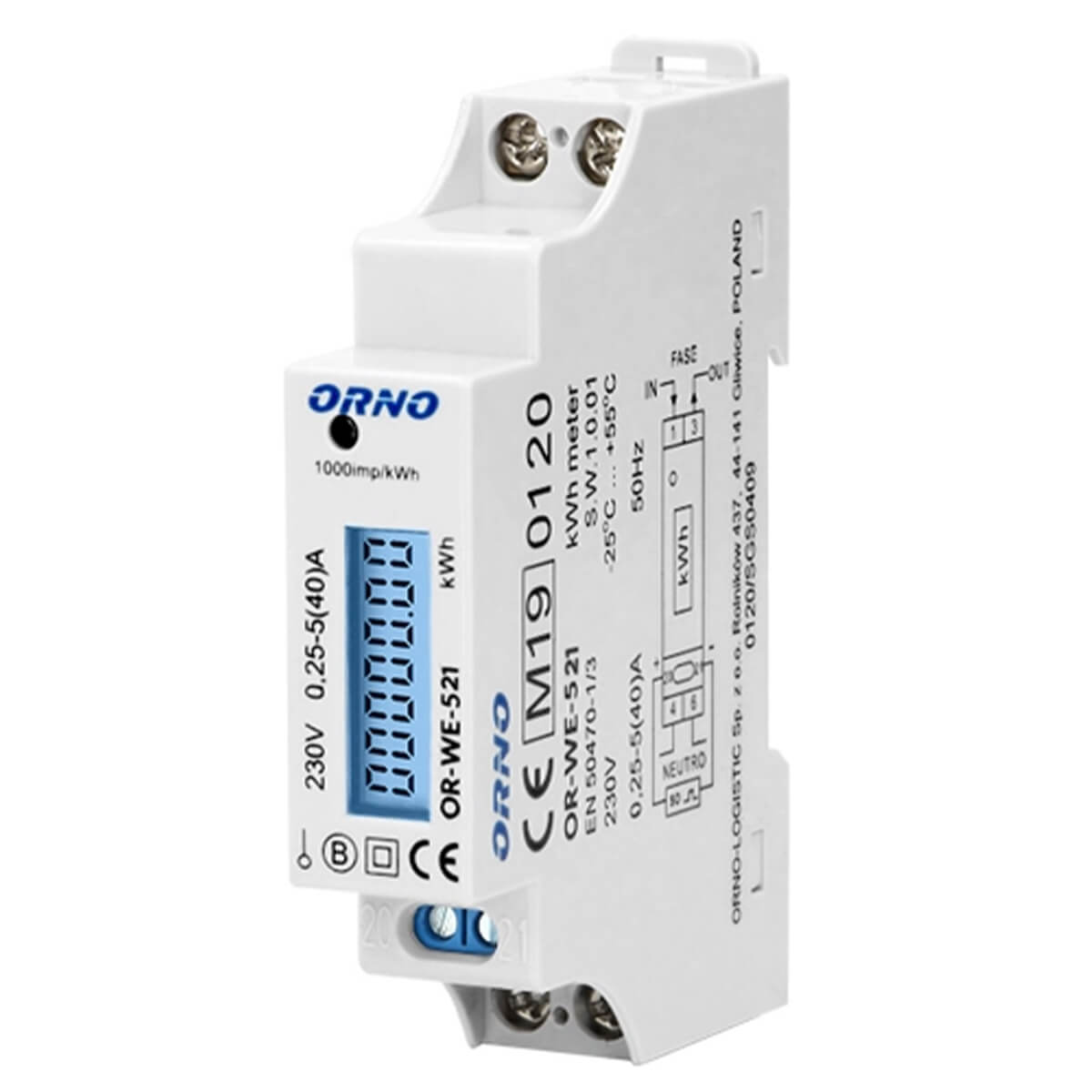 Однофазный счётчик электроэнергии ORNO OR-WE-521 — применяется для учёта потребления в бытовых и коммерческих сетях. Модель устанавливается на стандартную DIN-рейку, что упрощает монтаж и позволяет легко интегрировать устройство в существующий электрический щит. Благодаря MID-сертификации прибор подходит как для внутреннего контроля, так и для расчётных целей.
