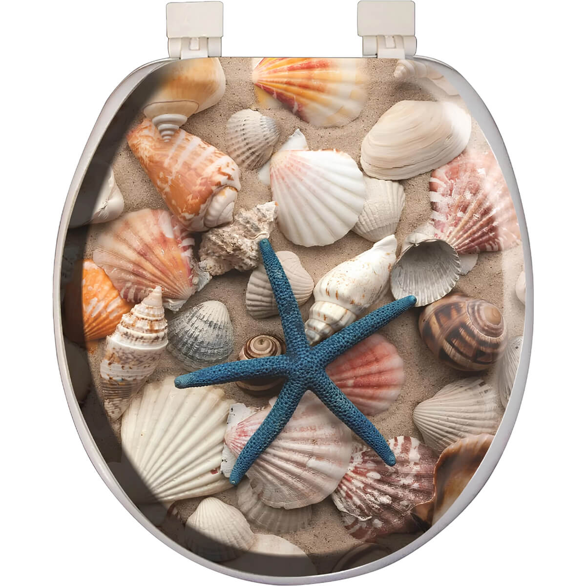 Сиденье для унитаза мягкое Softy с рисунком морской звезды и ракушек, пластиковое, белое — удобное сиденье для унитаза, которое делает посадку мягче и приятнее в ежедневном использовании.