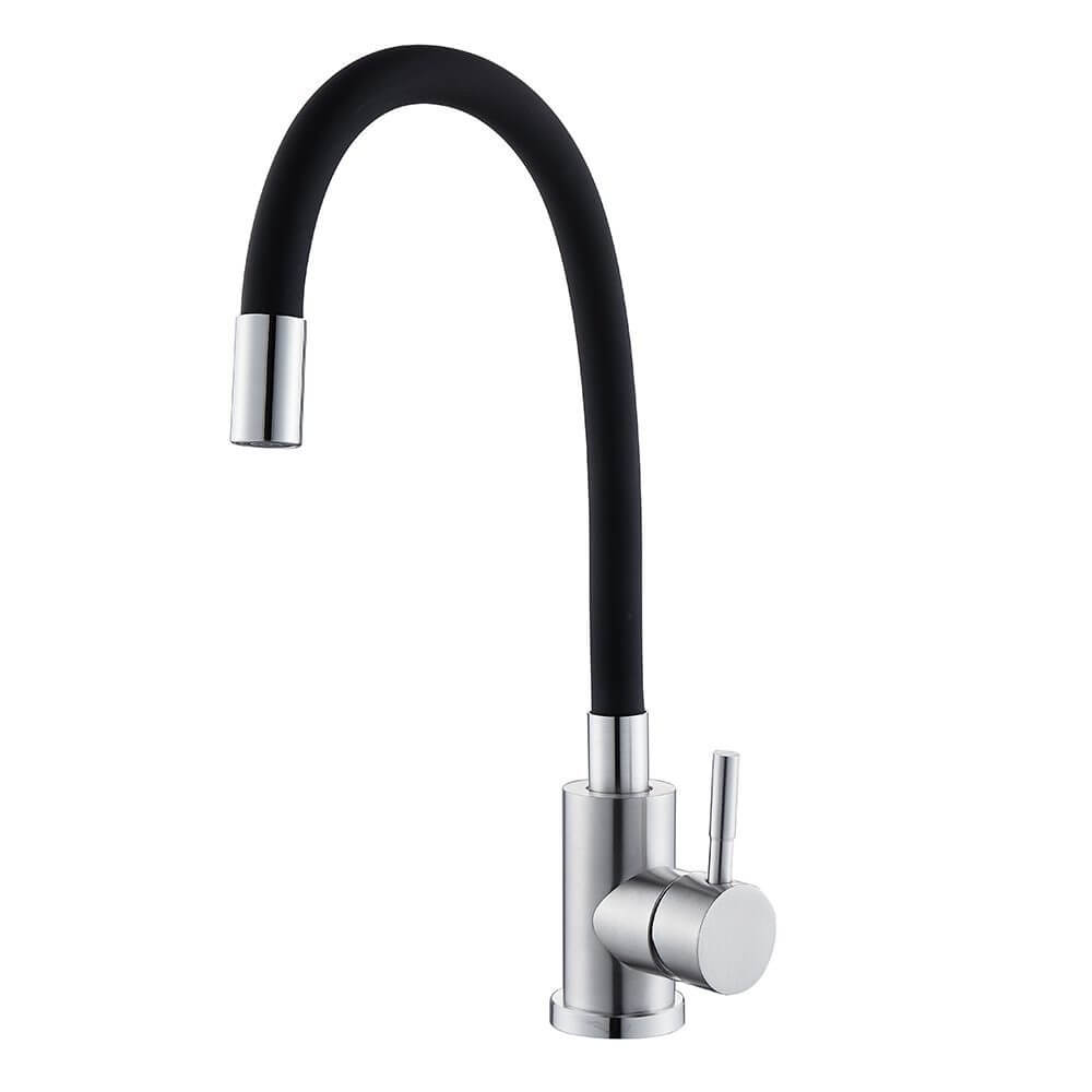 Смеситель для кухни Mat|eco Soul с гибким изливом, из нержавеющей стали предназначен для удобной подачи воды на кухонной мойке. Гибкий излив помогает точнее направлять струю при мытье посуды, овощей и наполнении высокой тары.