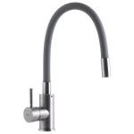 Смеситель для кухни ZERIX SUS-011 GRAY, серый, гибкий силиконовый излив, нержавеющая сталь SUS 304, однорычажный — это практичное решение для современной кухни, где важны удобство, износостойкость и чистый минималистичный дизайн.
