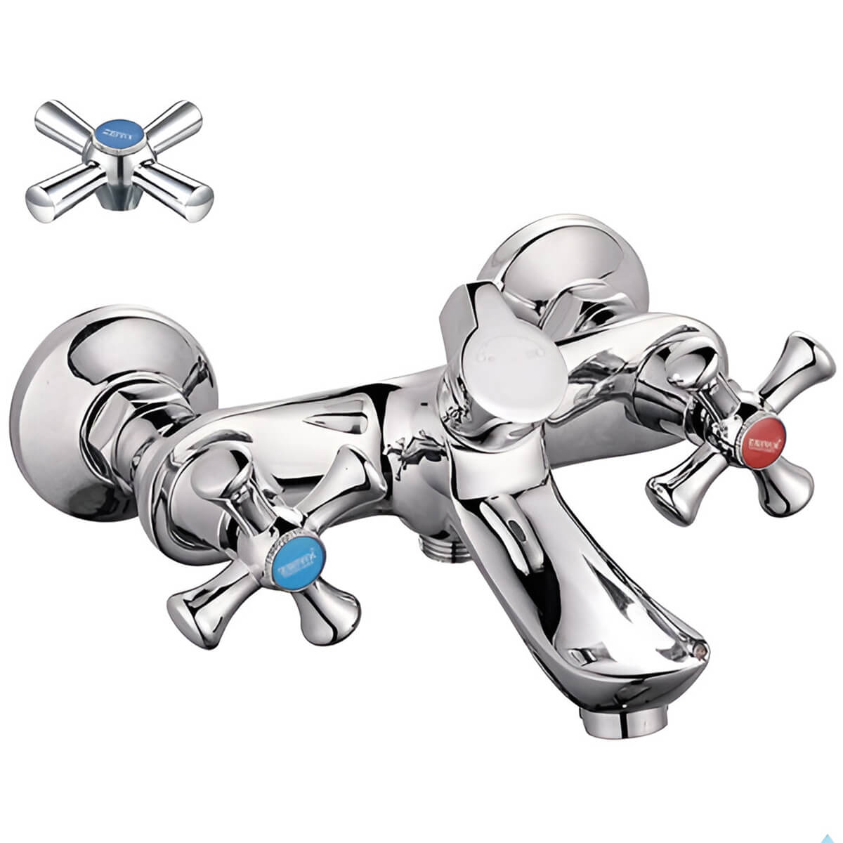 Смеситель для ванны Zerix ZOM-A722 настенный двухвентильный, короткий излив 10 см, хром, душевой комплект 1.5 м — классическое решение для ванны, когда нужна простая механика, понятное управление и аккуратный хромированный вид. Два вентиля помогают точно настроить температуру, а короткий излив не занимает лишнее пространство у борта ванны.