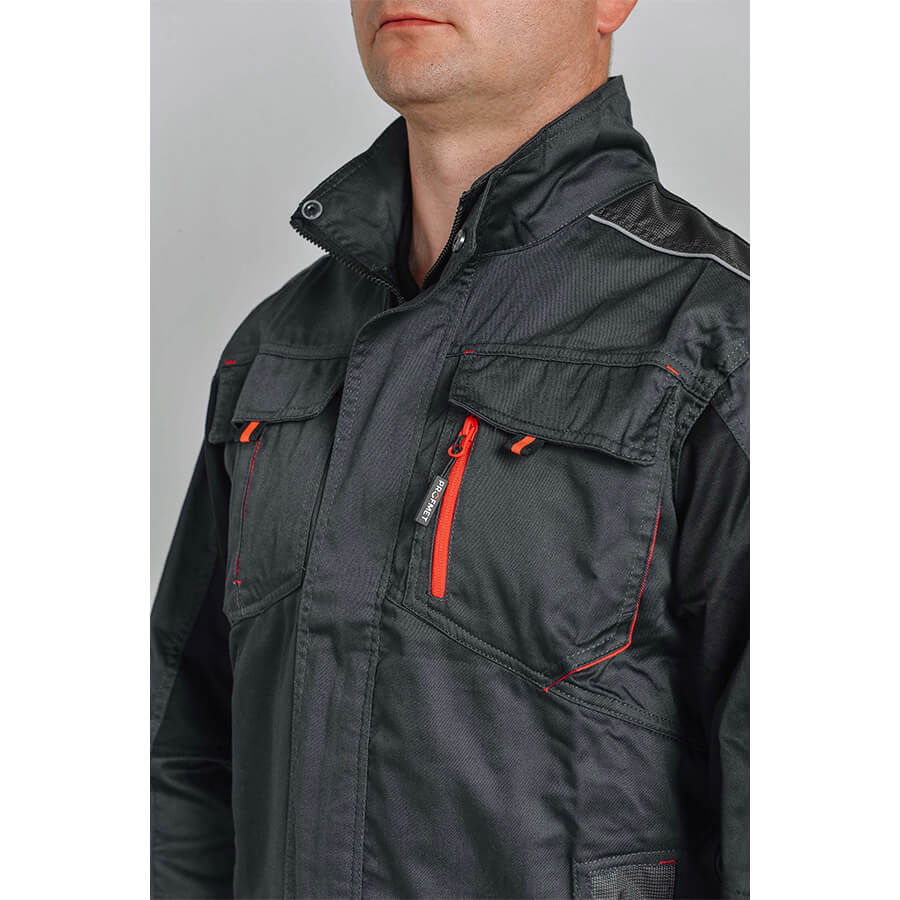 Рабочая куртка PROFMET (XL) изготовлена из 60% хлопка и 40% полиэстера, обеспечивает повышенную морозостойкость, прочность, ветрозащиту и устойчивость к пятнам. Имеет 4 вместительных кармана, идеально подходит для различных видов внутренних и внешних работ, обеспечивая комфорт и надежность в любых условиях.