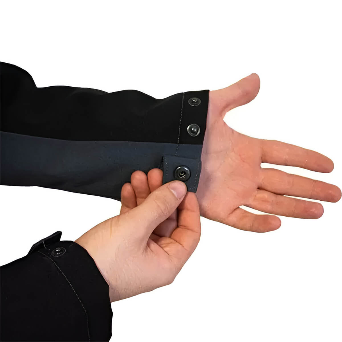 - Регулируемые манжеты на кнопках, позволяющие плотно зафиксировать рукав и снизить продуваемость.