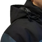 - Капюшон с утяжками и высокий воротник для дополнительной защиты от ветра и осадков.