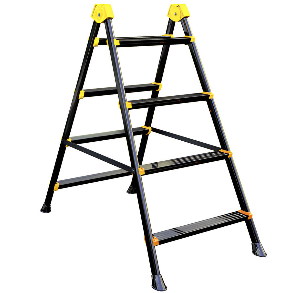 Стремянка металлическая двусторонняя Eurostep Lepus 4+4 ступени, 150 кг, черная создана для бытовых и профессиональных задач, когда нужен устойчивый доступ к высоте без лишних манёвров. Конструкция раскрывается в рабочее положение за секунды, а двустороннее расположение ступеней позволяет подниматься с любой стороны — удобно при монтаже, ремонте или обслуживании помещений.
