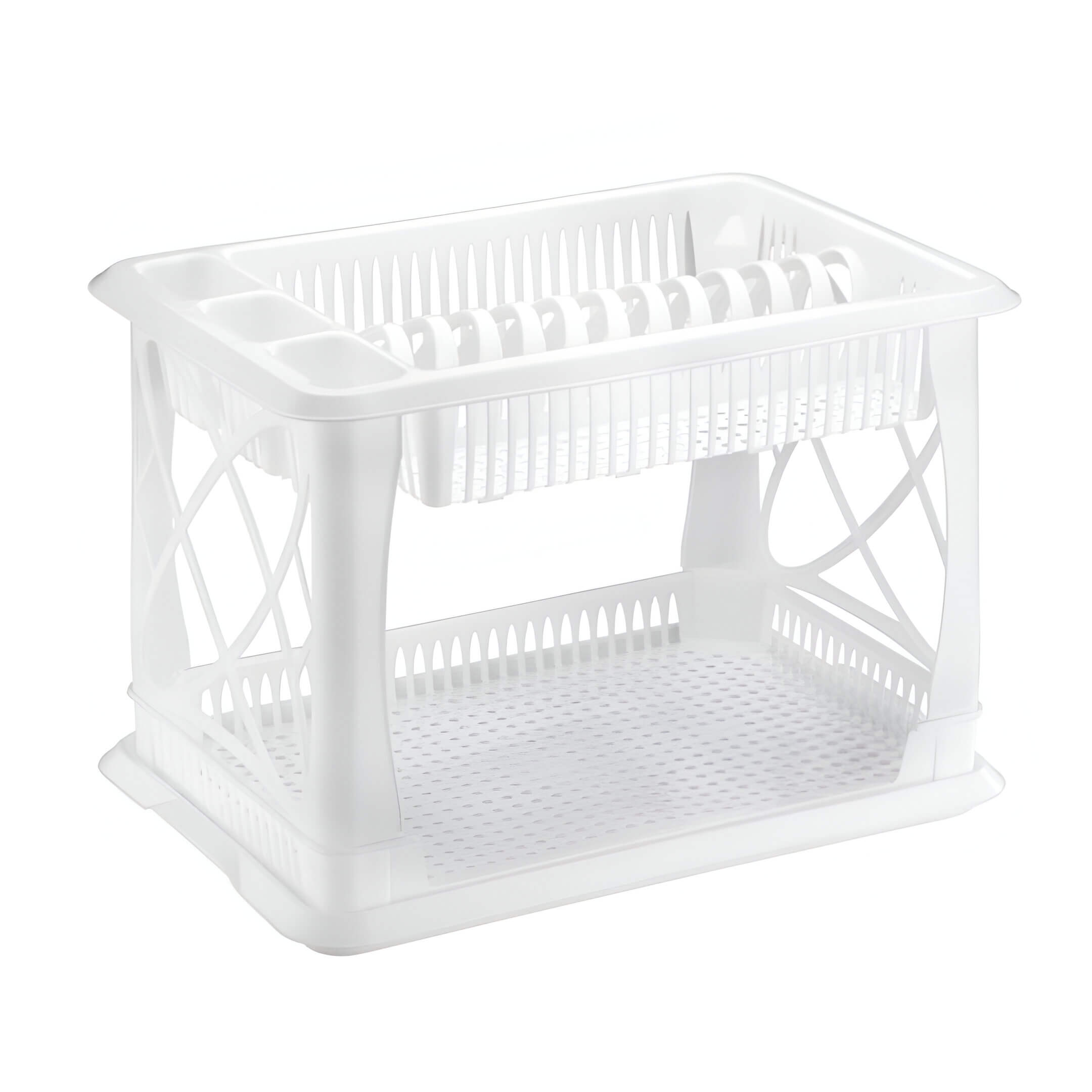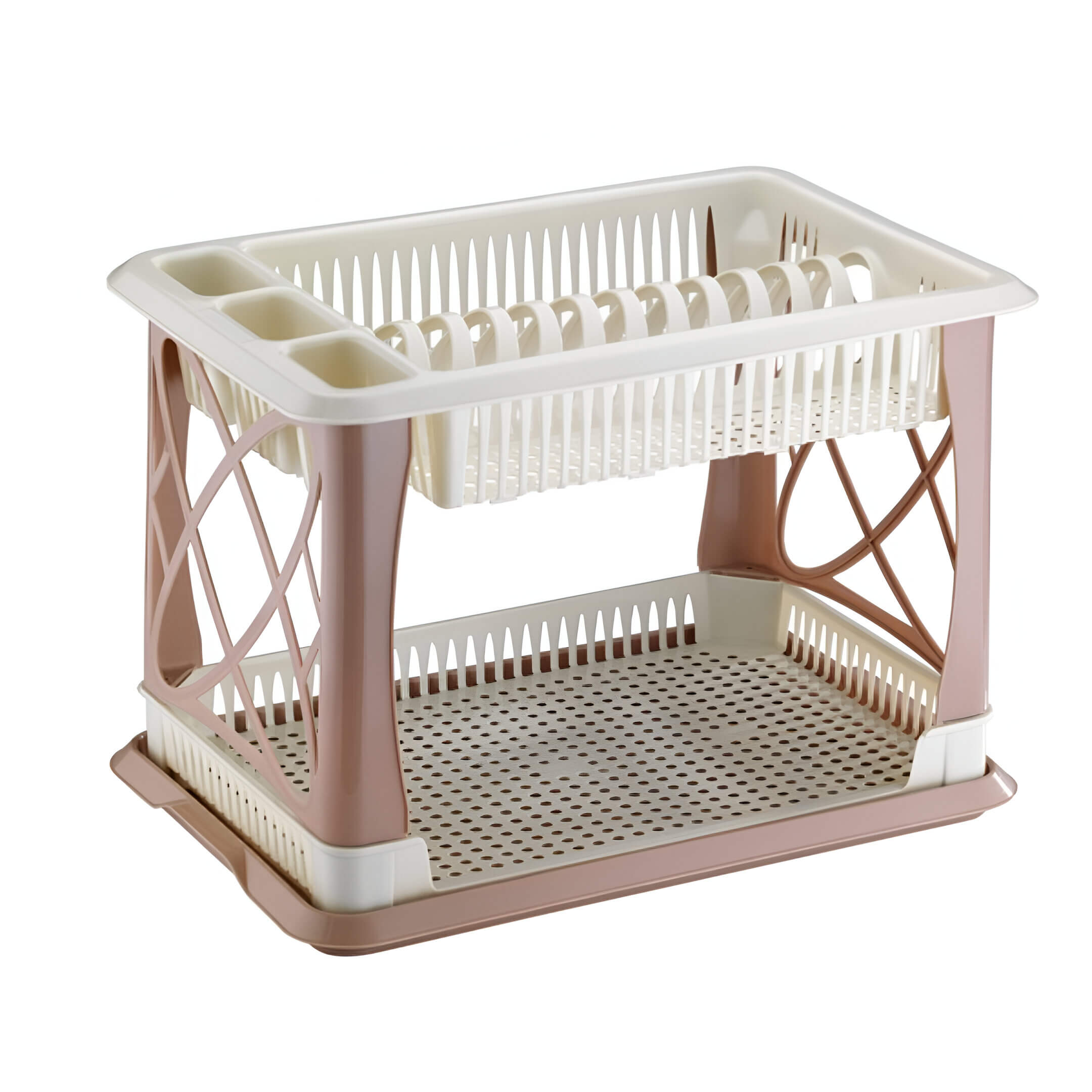 Сушилка для посуды двухъярусная Elif Plastic 29х42х29 см, с поддоном, пластиковая (Арт. 306)