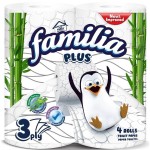 Туалетная бумага Familia 3-слойная, 4 рулона, 100% целлюлоза — вариант для ежедневного использования дома, на даче или в офисе. Мягкие 3 слоя обеспечивают комфорт и аккуратное очищение, а упаковка из 4 рулонов удобна для регулярных закупок без переплат за лишний объём.