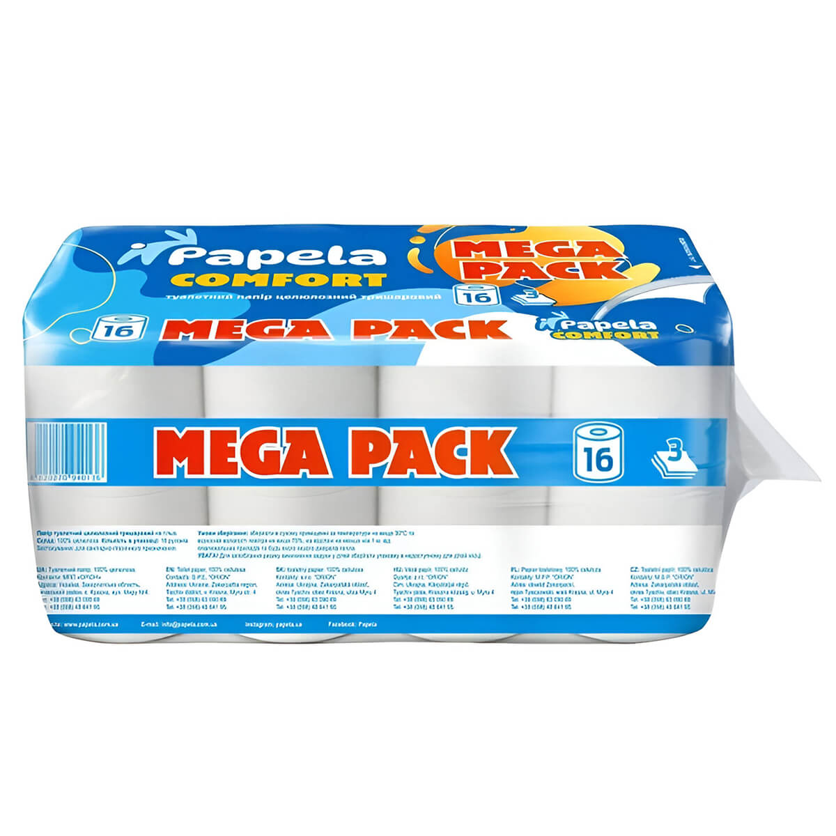 Туалетная бумага Papela Comfort Mega Pack 3 слоя, 16 рулонов, белая, 100% целлюлоза