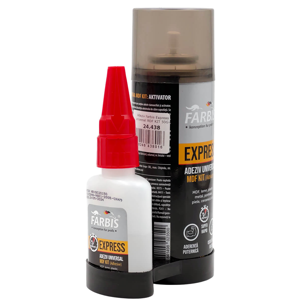 Клей универсальный двухкомпонентный для МДФ, дерева и пластика MDF KIT Farbis 50 г + 200 мл активатор — комплект для быстрого и прочного соединения материалов, где важна высокая скорость работы и надежность фиксации. Формула сочетает цианоакрилатный клей и активатор-ускоритель, благодаря чему соединение схватывается за считанные секунды и устойчиво к внешним воздействиям.