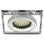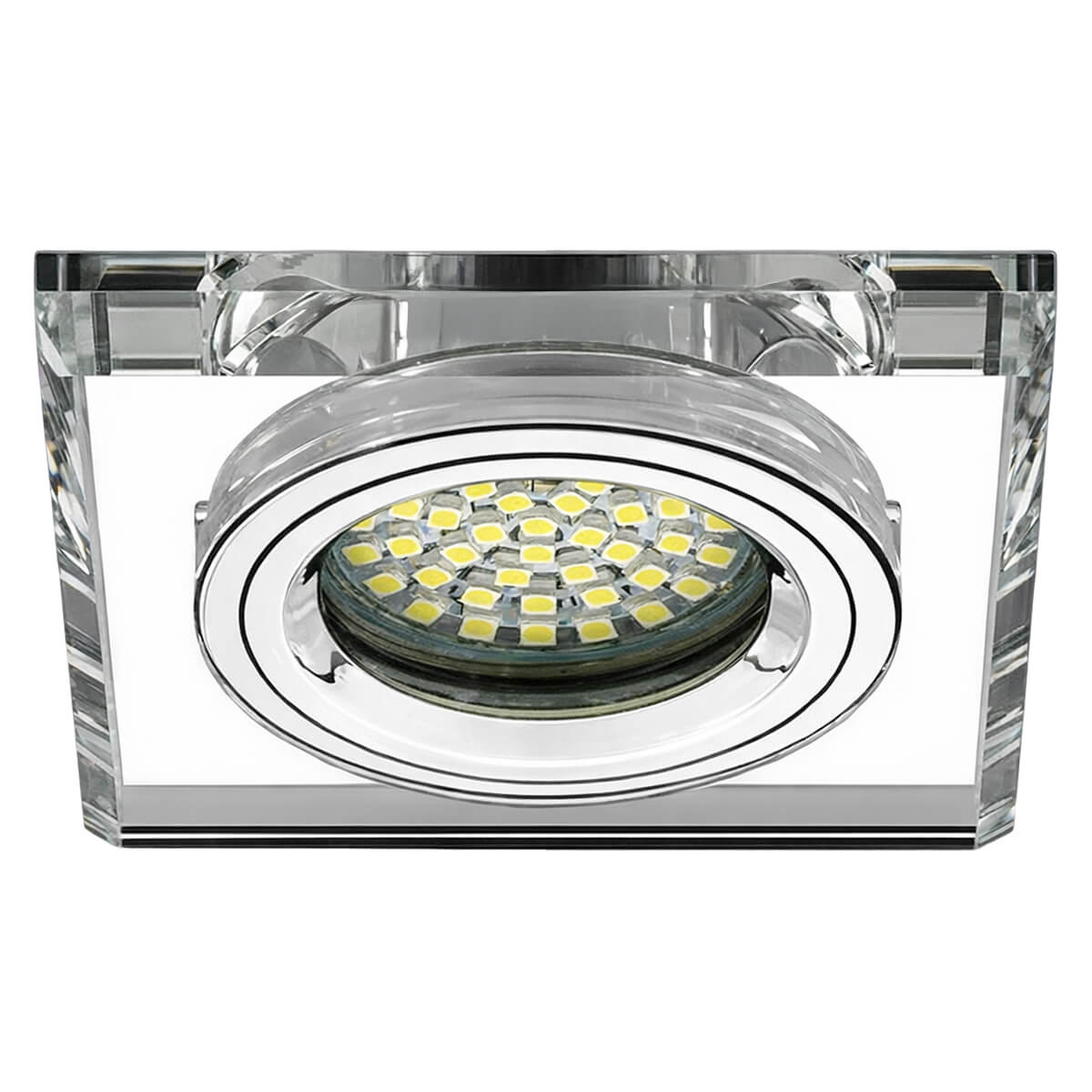 Встраиваемый спот Vivalux GRACE MR16 GU5.3 12 В IP20 квадратный серебристый стекло алюминий 90х90х25 мм предназначен для аккуратной точечной подсветки в жилых и коммерческих помещениях: коридор, кухня, гостиная, витрина, ниша, гардероб. Квадратная рамка из алюминия со стеклянной вставкой выглядит строго и подходит под современные интерьеры.