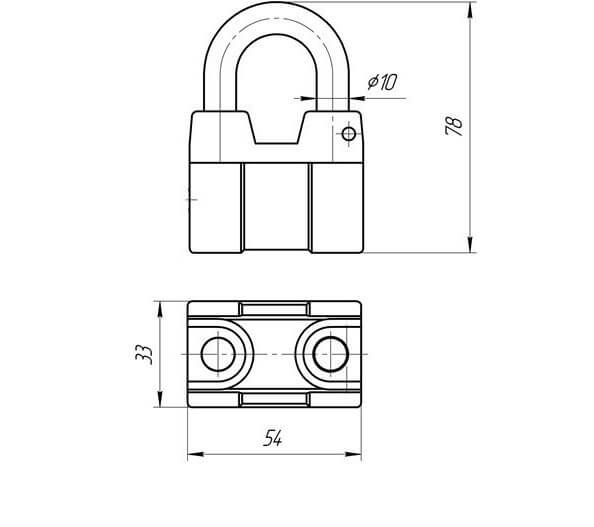 Замок навесной с дужкой (тип 3HB1) Зенит 78х54х33 мм BC4A - Предназначен для запирания подсобных и жилых помещений, шкафов, ящиков.