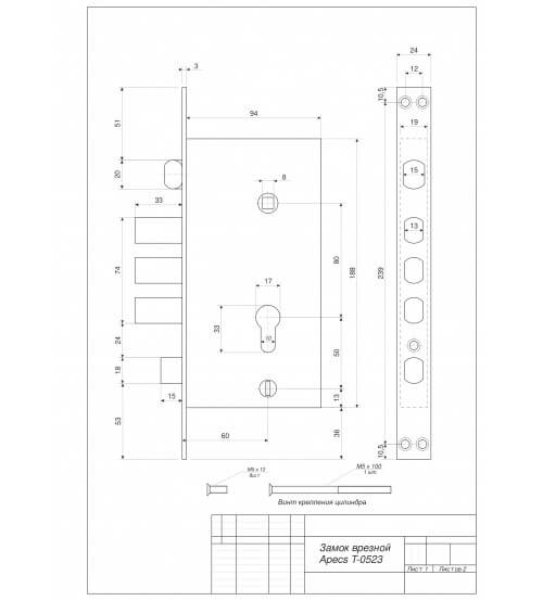 Корпус замка изготовлен с учётом современных стандартов безопасности. В конструкции применён цилиндровый механизм секретности типа «евроцилиндр», что позволяет легко подобрать или заменить сердцевину при необходимости. Удаление ключевого отверстия (backset) составляет 60 мм — оптимальное значение для большинства металлических дверей.