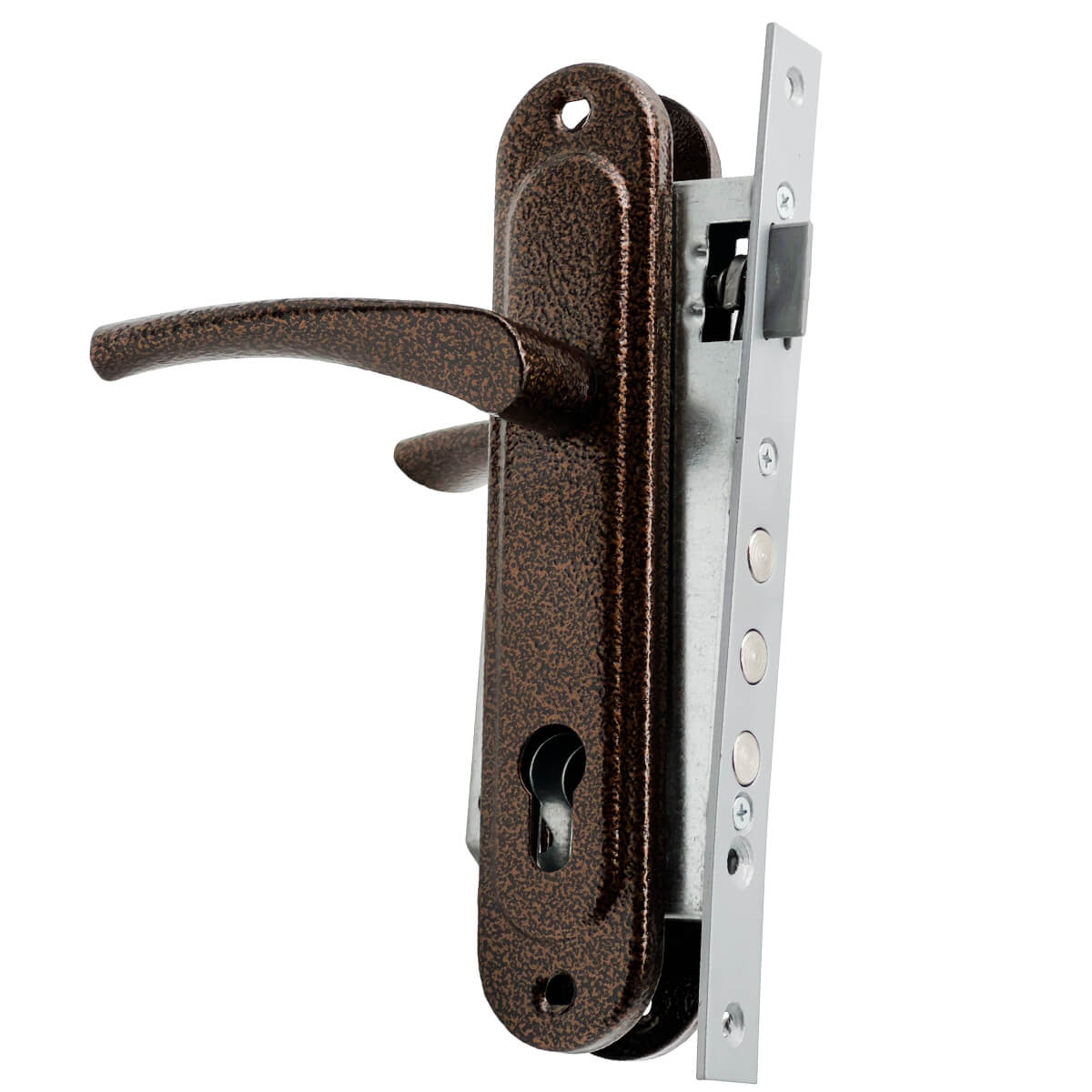 Замок врезной с ручкой АРИКО ЗВ-7 без цилиндрового механизма 85 мм черная медь — это надежное решение для установки на межкомнатные и входные двери, обеспечивающее удобство эксплуатации и долговечность конструкции.