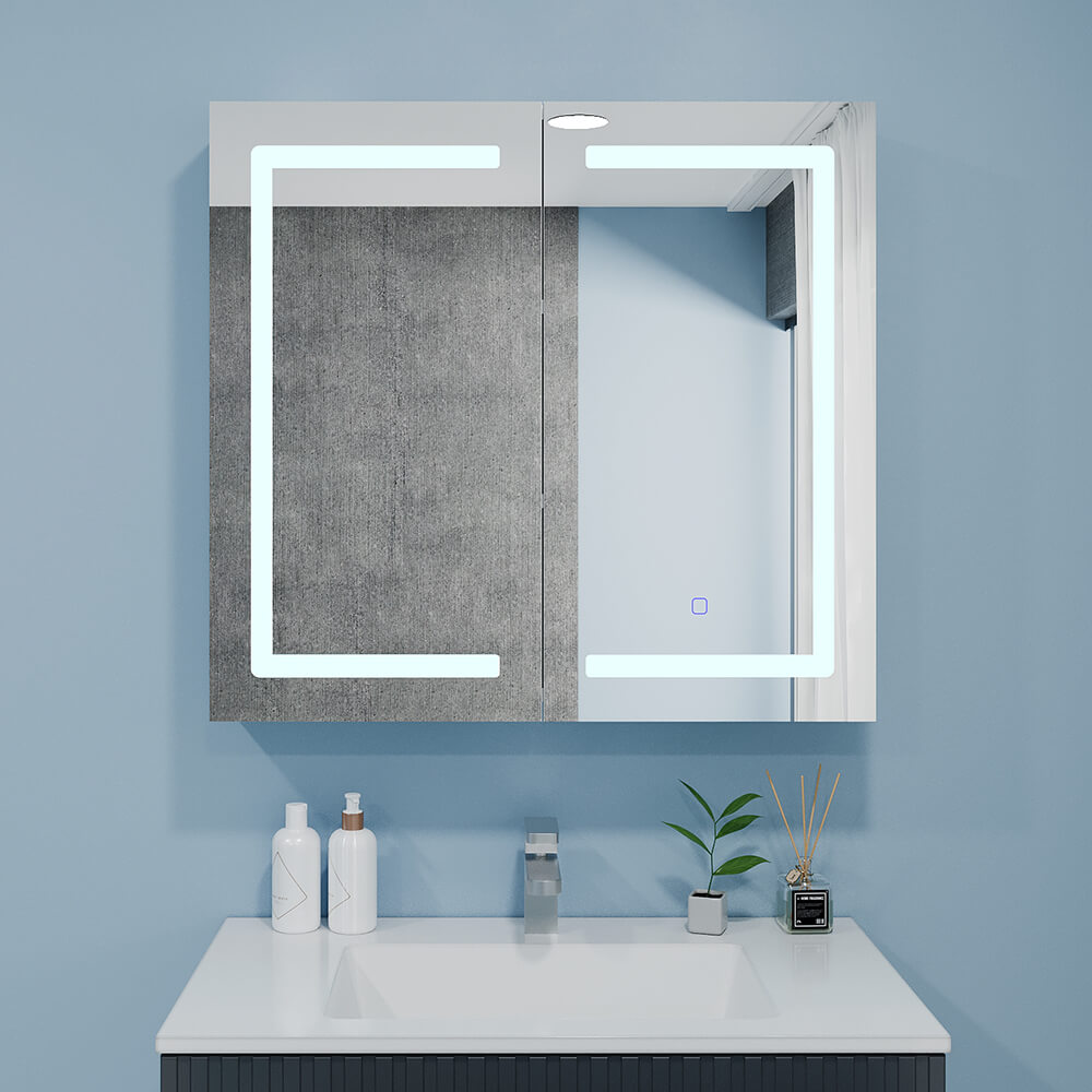 Корпус и фасад выполнены из прочного ЛДСП с матовым белым покрытием, устойчивым к влаге и пару. Зеркальные дверцы снабжены интегрированной LED-подсветкой, которая обеспечивает мягкое и равномерное освещение без бликов. Управление осуществляется с помощью сенсорной кнопки Touch, позволяющей легко включать и выключать подсветку одним касанием.